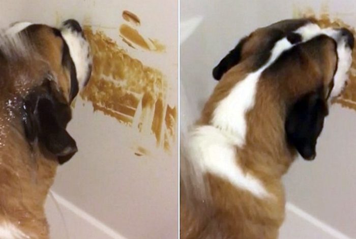 Если ваша собака не слишком любит водные процедуры, попробуйте намазать стену ванны арахисовым маслом или собачьей консервой. Это увлечет питомца на некоторое время и вы сможете без проблем его искупать.