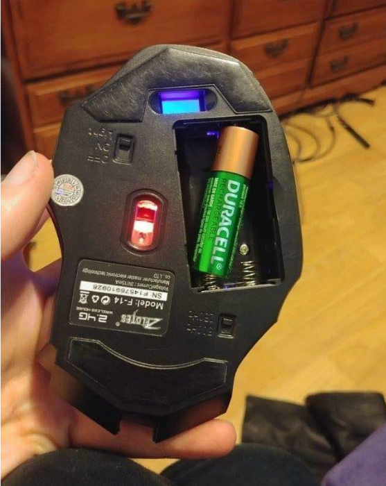 Некоторые беспроводные мышки способны работать от одной батарейки. Главное, разместить эту батарейку нужным образом.