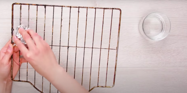 Шарик из фольги справляется со сложными загрязнениями не хуже специальной жёсткой щётки. Нехитрое приспособление эффективно для очистки гриля от нагара. Нужно просто смочить водой фольгу и потереть ей решётку.