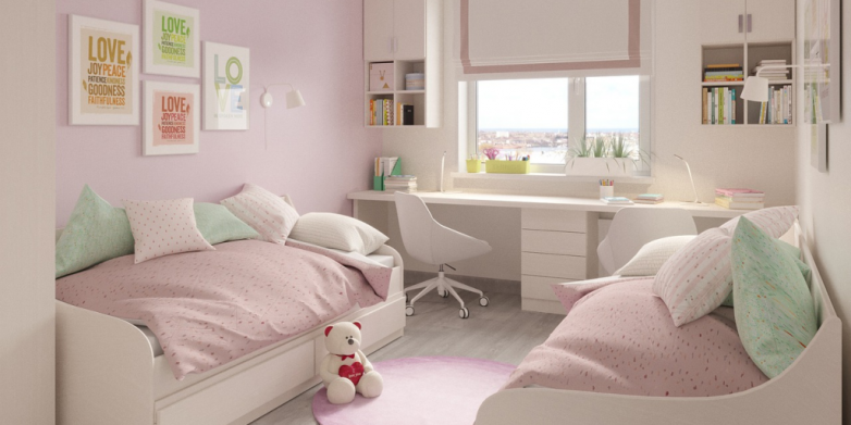 Также важно продумать функциональность комнаты «на вырост». Ребёнку 3 лет не нужна рабочая зона, но в 7 лет она понадобится. Важно, чтобы там, где в будущем встанет рабочий стол, были розетки для компьютера и настольной лампы. Провести их уже после ремонта будет сложно: придётся снимать чистовую отделку и штробить стены.
