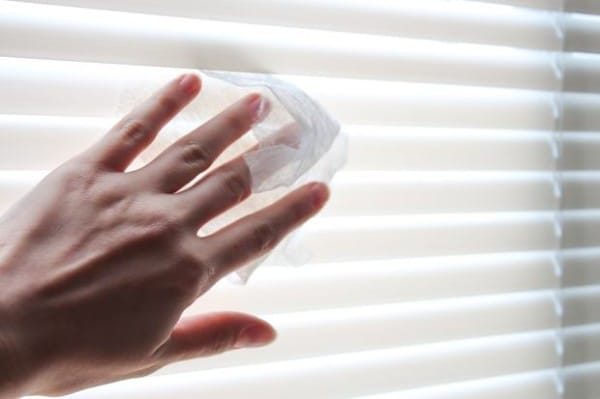 Просто потрите хорошенько загрязненное место салфеткой. Мыть жалюзи — сущая мука! Влаговпитывающие салфетки достаточно тонкие и легко проникают между ламелями.