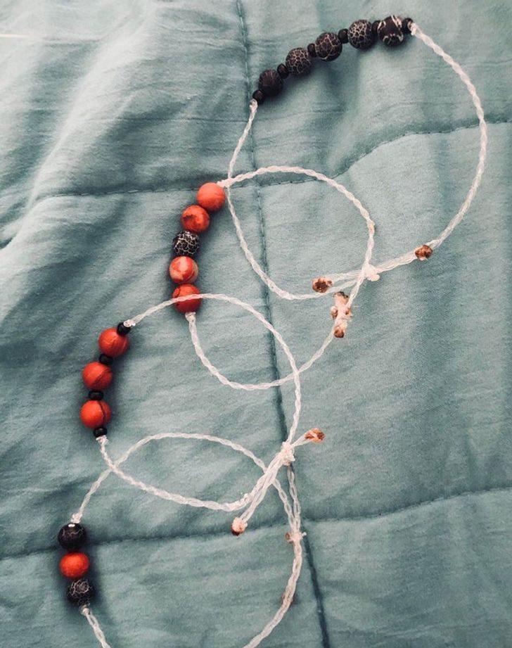 «Браслеты из рыболовной лески, которую я нашла на рифах»