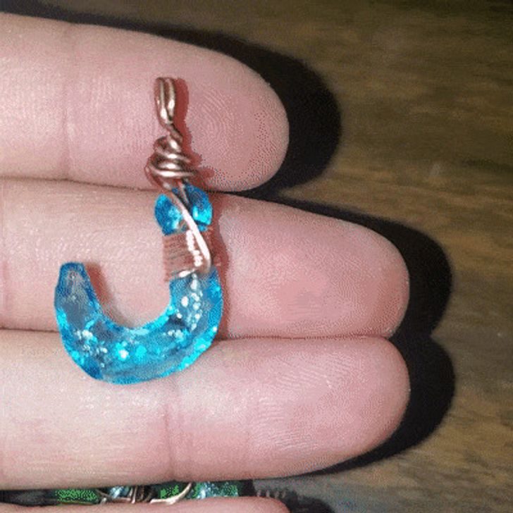 «Впервые попробовал сделать кулон. Я использовал прозрачную смолу и старый журнал об НЛО — вышло здорово»