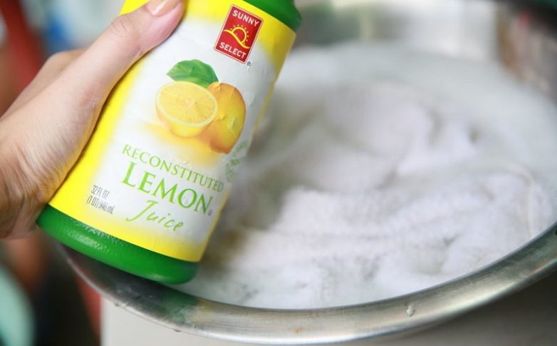 Также существует другой способ.Белую одежду поместите в горячую воду. Добавьте стакан лимонного сока и оставьте всё на ночь. Утром постирайте вещи как обычно. С каждой такой процедурой ткань будет отбеливаться.