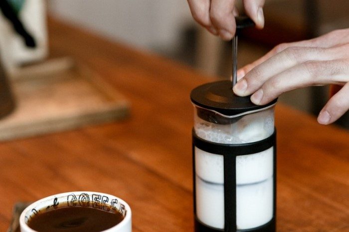 Устройство очень удобно не только для заваривания чая, но и для других задач. К примеру, френч-прессом можно взбить молочную пенку для кофе. Достаточно подогреть молоко и залить его в устройство. Следите, чтобы продукта было не больше, чем треть общего объема, иначе пенка может вытечь через верх. Далее в течение 30-40 секунд энергично двигайте поршень вверх-вниз. Затем оставьте его в нижнем положении и взболтайте жидкость, чтобы молоко смешалось с пенкой. Влейте содержимое френч-пресса в кофе, и напиток готов!