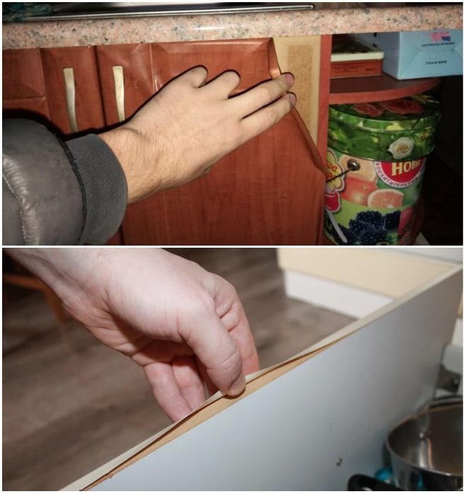 Важно! Хуже всего на высокие температуры реагирует пленочное покрытие, поэтому если решитесь на покупку мебели именно с ним, то обращайте внимание на то, как обработан торец. Если полотно пленки завернуто и надежно фиксируются другими элементами, то этот гарнитур прослужит долго, если он приклеивался в виде кромки или просто подвернут, то мебель очень быстро потеряет привлекательность.