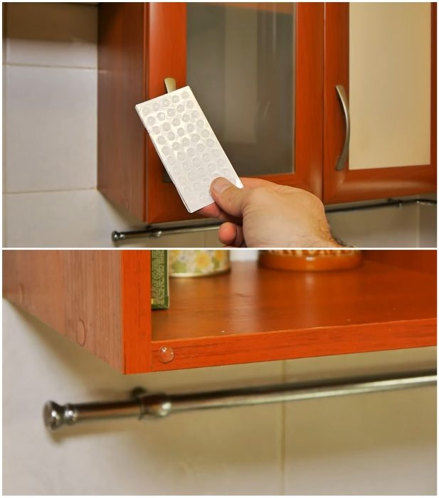 При выборе гарнитура невозможно все предугадать и продумать, поэтому начинают возникать неудобства при его эксплуатации. То дверь сильно ударяется и грохот стоит на весь дом, то ящики не выдвигаются как надо, то свет бьет в глаза и слепит и т.д. Когда подобных «мелочей» очень много, и они раздражают ежедневно, то стоит поберечь свои нервы. Для поддержания душевного равновесия стоит лишь усовершенствовать некоторые детали и проделать небольшую работу. Например, если дверцы тумб и навесных шкафов сильно стучать при закрывании или щелкают при открывании, даже при установленной системе дотягивания, то можно использовать один из трех эффективных способов или их комбинацию. Самым бюджетным и беспроблемным способом снизить шум, станет приобретение и закрепление в проблемных местах силиконовых отбойников.
