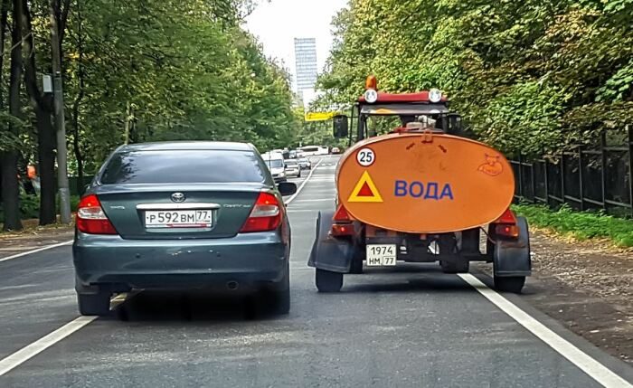 Практика показывает, что существует достаточно большая категория водителей, которая считает, что любое медленное едущее транспортное средство – это тихоход. На самом деле это не так. Попытка обгона такого ТС под знак 3.20 «Обгон запрещен» закончится крайне печально. Автомобилист будет наказан в соответствии со статьей 12.15 КоАП. Следует всегда помнить о том, что исключение из действия знака «Обгон запрещен» составляют только настоящие тихоходные транспортные средства. Узнать таковые можно по характерному знаку – оранжевому треугольнику с желтой окантовкой на корпусе такой машины. Под действие исключение на запрет обгона также подпадают гужевые повозки, велосипеды, двухколесные мотоциклы без бокового прицепа и мопеды.