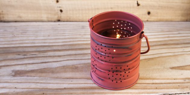 Для подсвечников нужны высокие жестяные банки и дрель. Если у банок рваные края, загните их внутрь и прижмите плоскогубцами, чтобы не пораниться. Просверлите в банках отверстия — можно в случайном порядке, можно так, чтобы они складывались в силуэт ёлочки или снежинки. Зашлифуйте отверстия наждачкой, а банку покройте белой краской — если её под рукой нет, этот этап можно пропустить. На дно банкой капните воском и закрепите свечу. Вуаля, подсвечники готовы.