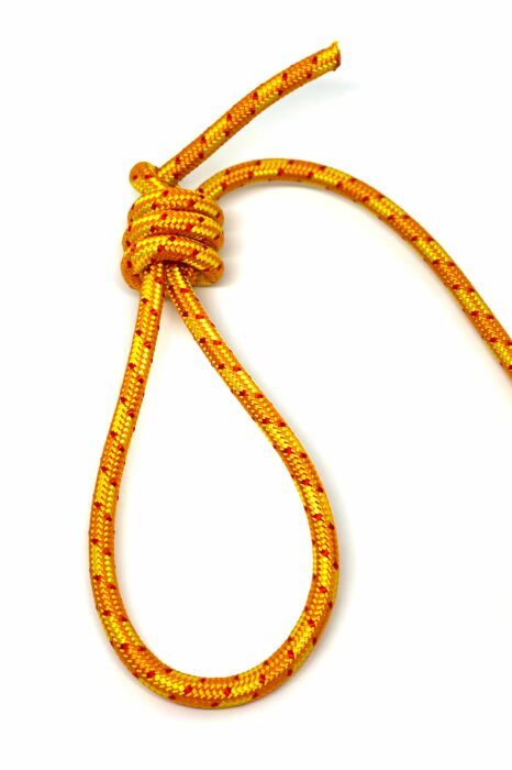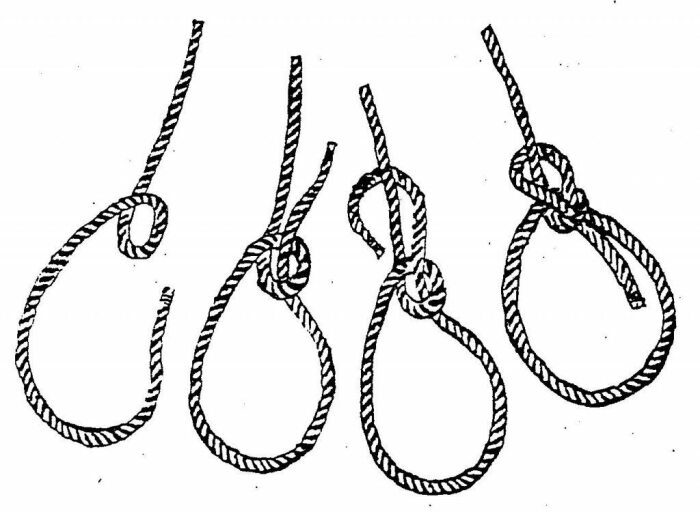 Чтобы сделать этот узел, нужно взять веревку и для начала выложить ее английской буквой «z». После этого одним из свободных концов необходимо сделать несколько оборотов вокруг сложенной части веревки: сначала один оборот, второй оборот накрест и еще два рядом. Затем свободный конец продеваем в петлю. Узел затягивается с помощью рабочей петли. Такая затягивающаяся петля очень надежна, поэтому с успехом может использоваться в бытовых вопросах. Например, с ее помощью можно на веревке зафиксировать банку или бутылку, любых размеров и веса, которые нужно поднять или опустить. Также этот узел весьма полезен на стройке, где посредством него можно перемещать даже крупногабаритные вещи.