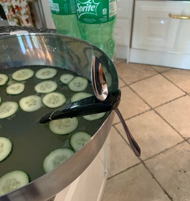 «Моя сестра сделала стоппер для половника с помощью ложки, чтобы он не соскальзывал в кастрюлю»