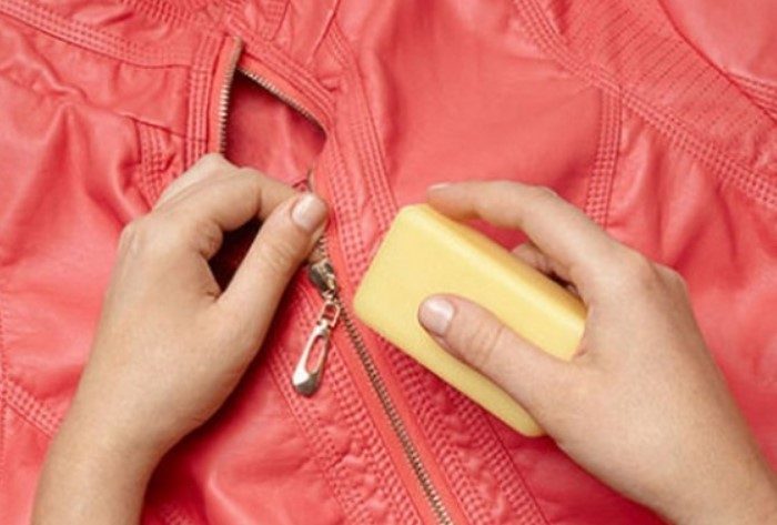 3. Металлическую молнию на кожаной обуви, сумке и других аксессуарах нужно периодически смазывать воском, мылом, парафином или графитом, а также регулярно очищать от грязи.