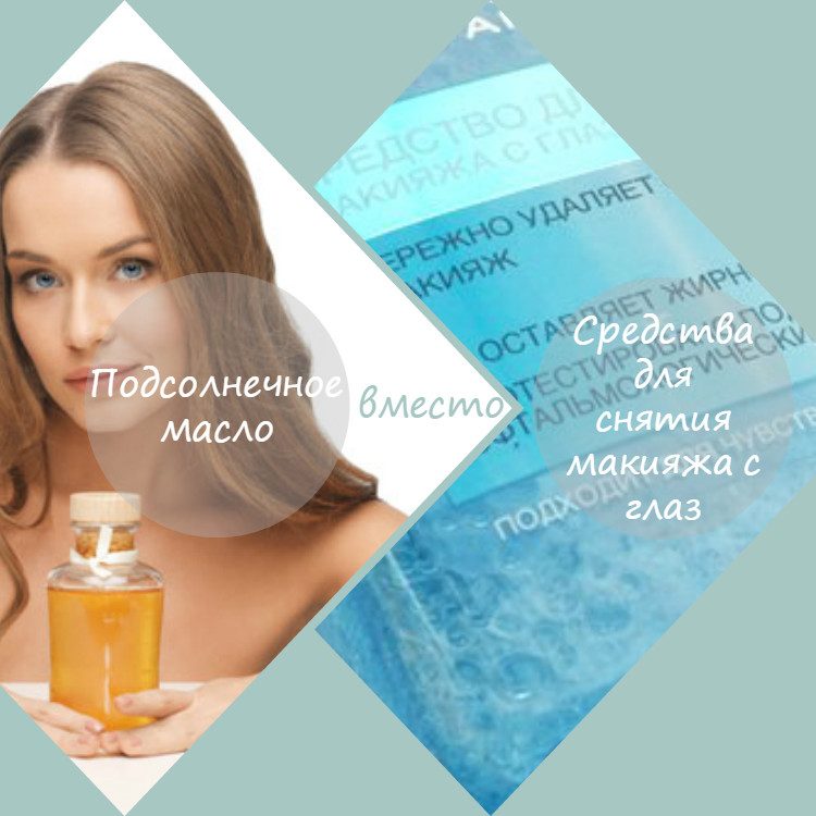 Подсолнечное масло прекрасно подходит для снятия макияжа с глаз и является достойной заменой двухфазной жидкости. Нанесите немного масла на ватный диск, закройте глаз, приложите диск к веку, аккуратно сложите, чтобы края диска оказались по обе стороны от ряда ресниц и легким движением сотрите макияж. Так вы не повредите нежную кожу век и эффективно удалите загрязнения.