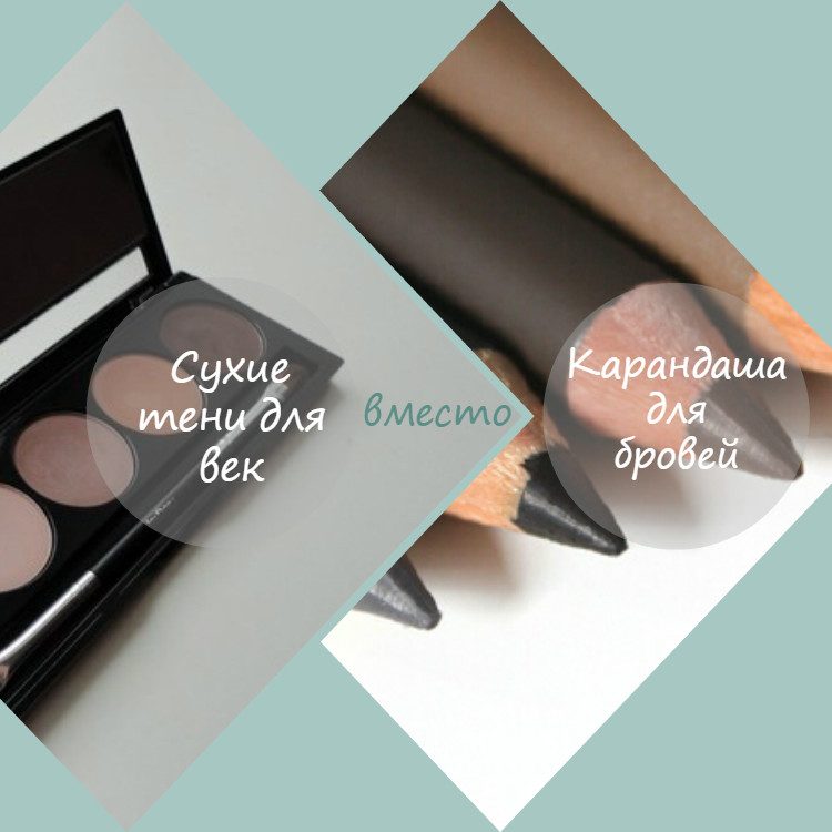 Сухие тени для век подходящего оттенка вполне могут заменить карандаш для бровей. Матовые оттенки набираются аппликатором и аккуратно наносятся между волосками.