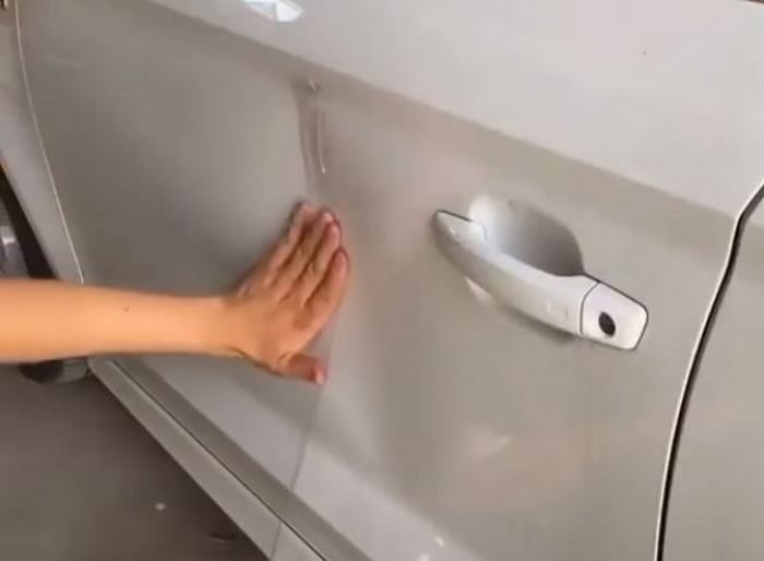 Также, следует в обязательном порядке облить кузов горячей водой (лучше кипятком) сразу после того, как к нему были приклеены стержни. Это позволит сделать металл более податливым и облегчит процедуру выправления. Одно хорошее движение и проблемы больше нет. Остается только почистить ЛКП от следов приклеивания.