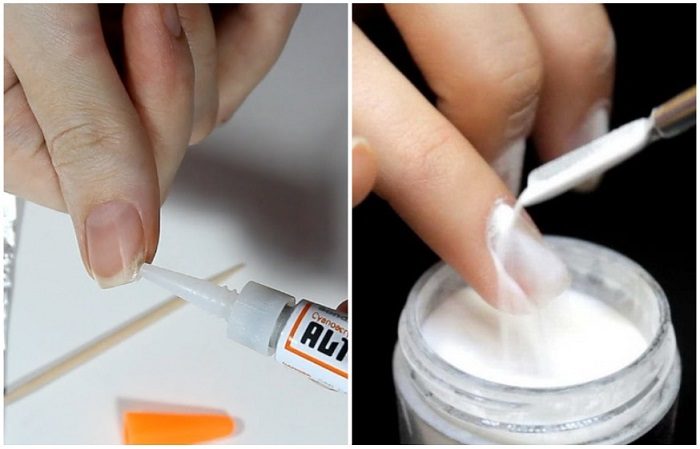 И снова мы возвращаемся к нашему верному и надежному помощнику – клею. Вам нужно со всех сторон обработать трещину клеем, после чего опустить поврежденный ноготь в акриловую пудру и подождать, пока она полностью высохнет. Чтобы ноготь выглядел красиво, аккуратно и ничто не напоминало о трещине, пройдитесь по нем шлифовкой – так вы сможете выровнять поверхность. Если вы пользуетесь гель-лаком, то можете справиться с трещиной при помощи акриловой пудры еще на этапе нанесения базы.
