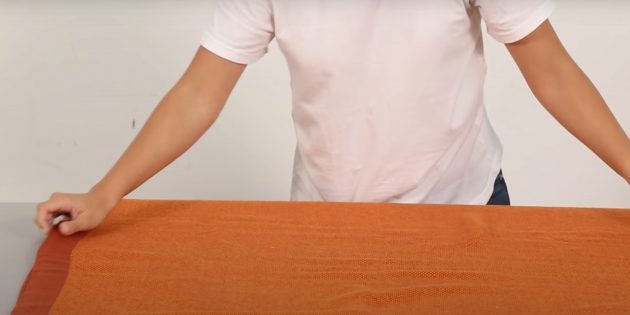 Возьмите мягкую ткань и сложите её пополам так, чтобы получился прямоугольник 90 × 120 см.