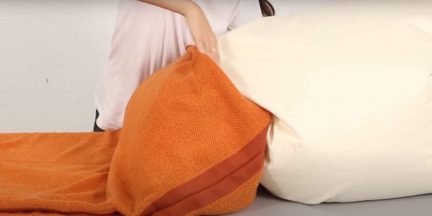Во внутреннем чехле находится наполнитель. Поэтому цвет и мягкость ткани для этой детали не так важны. Главное, чтобы материал был плотным и дышащим. Пойдёт, например, спанбонд. Иногда его заменяют на бязь.