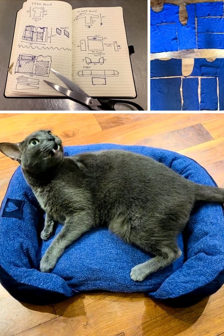«Вместо того чтобы выбрасывать вещи, начала откладывать нашу старую одежду, которая не годится для перепродажи. И вот использовала ее, чтобы сделать эту кровать для нашего кота»