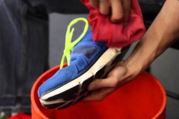 1. Расшнуруйте спортивную обувь, извлеките из нее стельки. Эти изделия очищаются отдельно.