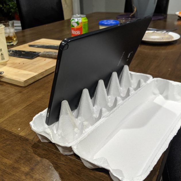 8. Упаковка из под куриных яиц может быть отличной подставкой для планшета, особенно если вы любите смотреть видео во время готовки.