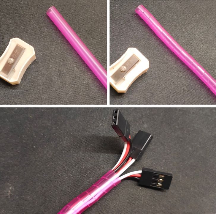 Обычная трубочка для питья и точилка — и вот что вышло: универсальный держатель для кабелей и проводов