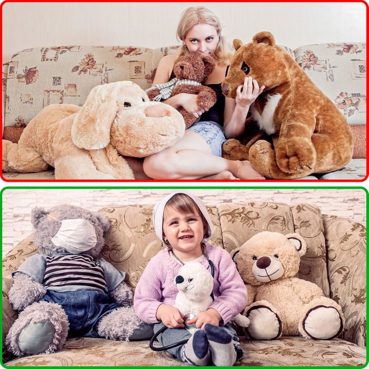 Мягкие игрушки в доме допустимы лишь при наличии детей. Без них последние превращаются в дополнительный пылесборник. Лучше избавляться от плюшевых зверушек сразу, как только ваш ребенок вырос. Например, их можно подарить детям друзей или знакомых, оставив пару небольших экземпляров на память.