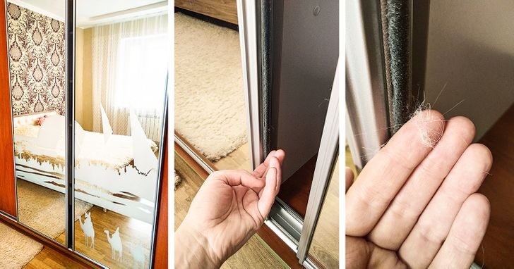 Уплотнитель — вещь, несомненно, хорошая. Благодаря ему дверцы плотно прилегают к шкафу и бесшумно разъезжаются. Загвоздка лишь в том, что на ворсистых полосках ткани быстро скапливаются пыль и шерсть домашних животных. То же самое происходит с треком, по которому ездит дверца: в узкую бороздку забивается мелкий мусор.