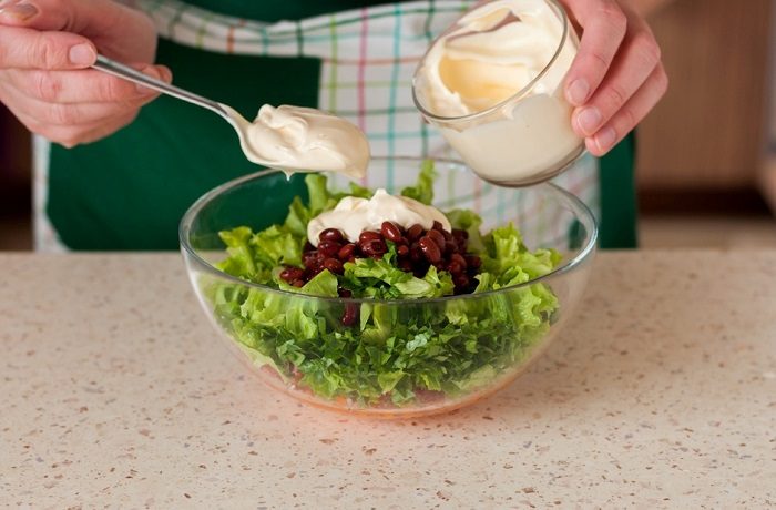 Майонез действительно считается жирным продуктом, который вредит и фигуре, и здоровью. Однако заменять его растительным маслом, оливковым или кунжутным, не имеет никакого смысла, ведь жирность майонеза варьируется от 50 до 80 процентов, а любого растительного масла – 95-99 процентов.