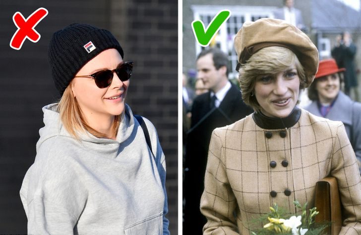 При выборе шляпы стоит уделить особое внимание высоте тульи. Если она будет слишком высокой, то добавит лицу лишних сантиметров. Поэтому отдавайте предпочтение более низким вариантам. Отлично подойдут широкие поля — линия скул уже не будет такой узкой. Аккуратные кепки также удачный выбор.