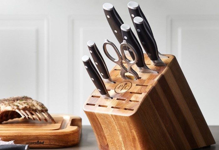 Подставка (в основном деревянная) — удобное изделие для хранения ножей. Однако есть одно «но». Зачастую хозяйки моют ножи и сразу вставляют в подставку без просушки. В результате в отверстиях скапливается влага и развивается плесень. Вычистить грибок из узких отверстий практически невозможно. Вариантов тут несколько: либо ставьте в подставку только сухие ножи, либо приобретите металлическое изделие, а еще лучше — магнитный держатель.