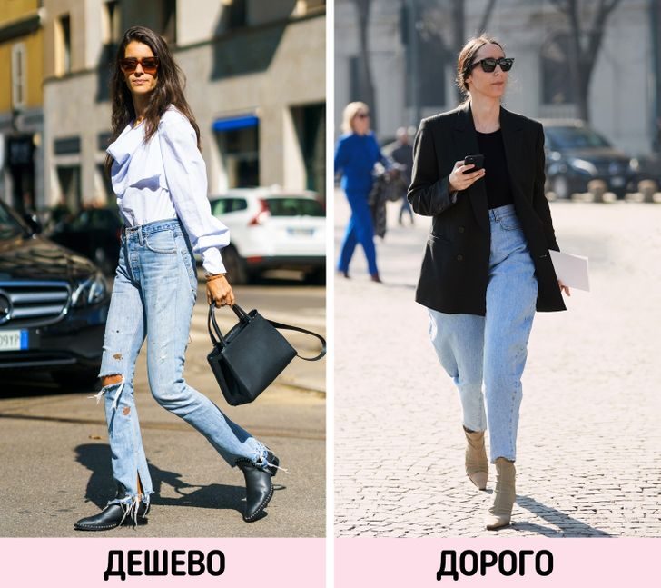 Хотя легкие потертости на джинсах могут придать образу милую небрежность и легкость, все-таки их стоит избегать, если вы хотите выглядеть по-настоящему дорого. Дело в том, что любая затертость, торчащие нитки и тем более дырки мгновенно сделают ваш наряд более повседневным, в отличие от денима без потертостей.