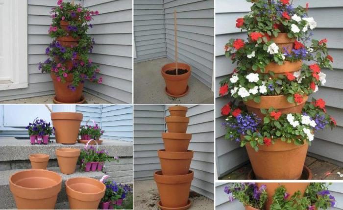 Из нескольких небольших глиняных горшков получается превосходный горшок с множеством «этажей».