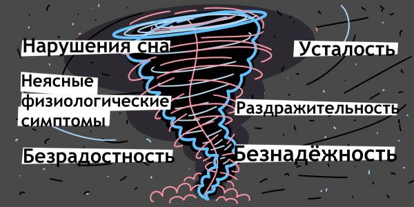 Если наплыв дел был временным, жизнь вернётся в норму. Но чаще проблем меньше не становится, поэтому мы отказываемся от отдыха и урезаем сон. Воронка сужается ещё больше, и почти всё, что в ней помещается, связано со стрессом.У человека возникает ненависть к работе и постоянная тревожность. Ему становится тяжело выполнять рабочие обязанности, а в конце дня он чувствует себя выжатым как лимон.