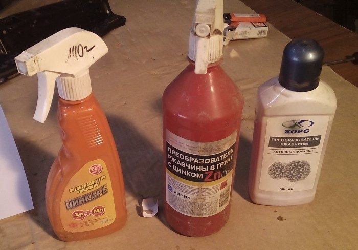 Химические препараты, которые предотвращают распространение коррозии. После нанесения средства на металл вещество вступает в реакцию с железом и образовывает на поверхности материала защитный слой. Пленка продержится на изделии определенный промежуток времени, а затем процедуру придется повторять. Средства оберегают материал от негативного влияния кислорода и влаги.