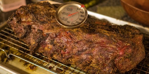Чтобы определять готовность стейков на глаз, нужен достаточный опыт. Без него мясо легко передержать, сделав его очень сухим. Чтобы этого не допустить, используйте специальный термометр, который втыкается в кусок и показывает температуру его внутренней части. Обычно полная прожарка (Well Done) достигается при температуре от 71 ºС — в зависимости от мяса.