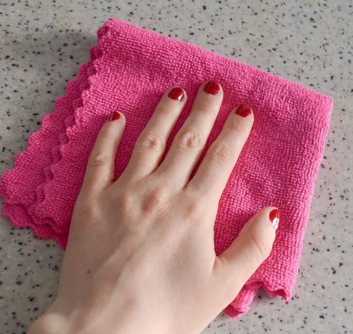 Салфетки из микрофибры — находка для чистюль: они не оставляют разводов, прекрасно впитывают влагу, поглощают пыль, а не разносят ее по мебели. Эти незаменимые помощники выдерживают до 500 стирок.