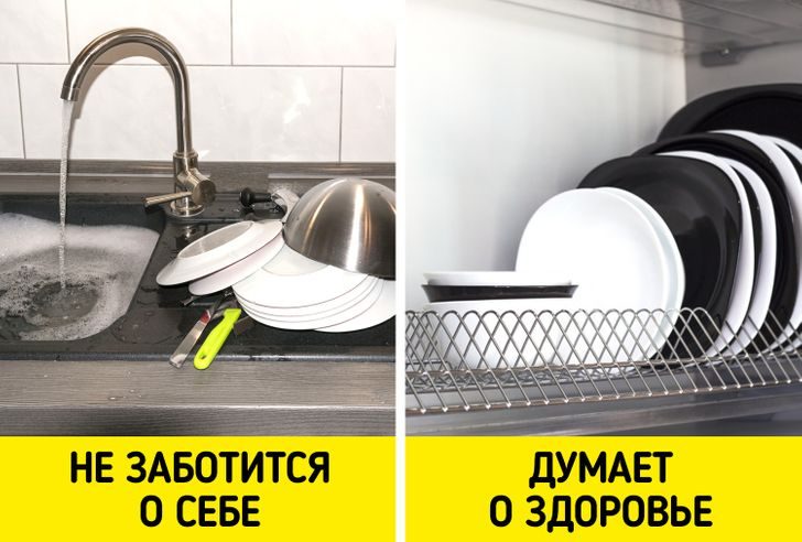 Кухня — еще одно любимое место для плесени, потому что здесь почти всегда повышенная влажность. Чтобы избежать размножения спор, можно открывать окно во время кипячения воды и включать вытяжку, если есть такая возможность. Стоит также избегать скопления посуды в раковине, а кухонное полотенце регулярно стирать и просушивать на сквозняке.