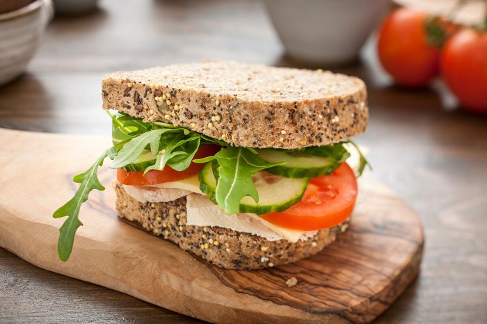 Мы предлагаем готовить «умные сэндвичи», лишая их ненужных калорий. Так, например, можно приготовить вкусное блюдо не с двумя, а с одним куском хлеба, а горячие бутерброды сделать на гриле или в микроволновке, отказавшись от сковороды с маслом. Если вы любите сэндвичи с мясом, овощами и соусом, то выбирайте диетическую курицу, низкокалорийные огурцы, помидоры и капусту, сметану вместо майонеза. Еще одним простым, но эффективным способом сократить калорийность блюда, является замена белого хлеба цельнозерновым.