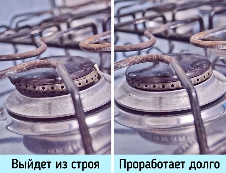 Газовые и электрические конфорки необходимо чистить регулярно. Частички пищи, попадающие в них, мешают потоку газа, и конфорка работает уже не столь эффективно. Также это может создать пожароопасную ситуацию. Чем чаще вы прочищаете горелки, тем дольше и лучше будет работать плита.