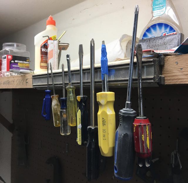 Магнитный держатель для ножей отлично подойдёт для мастерской, чтобы держать под рукой все отвёртки.