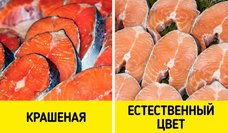 Цвет натуральной рыбы неоднороден, а на мышцах есть светлые прожилки. Если таковых не имеется, то тушка была окрашена.