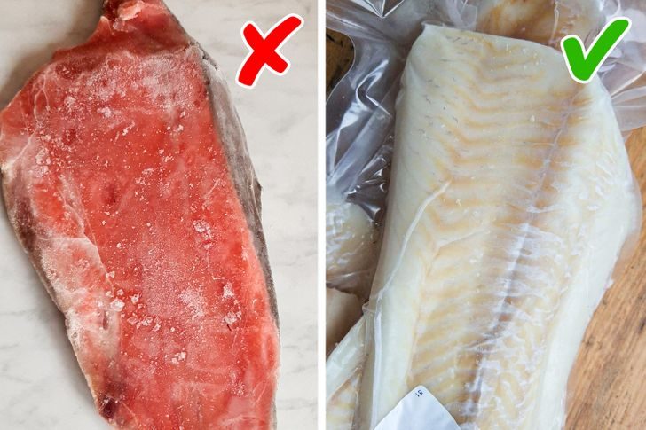 Недобросовестные производители могут продавать повторно замороженную рыбу. У нее толстая неравномерная глазурь, которая может быть покрыта снегом или инеем. Такая рыба становится невкусной и теряет питательную ценность. К тушке могут присоединиться микроорганизмы с поверхности инвентаря, глазури и рук персонала магазина. Если ледяная корка на тушке треснула или под ней видна кровь, это говорит о том, что рыба не хранилась должным образом и явно была повторно заморожена. Об этом также свидетельствует неестественная поза рыбы. Лучше не брать изогнутую тушку со сломанными плавниками и хвостом.