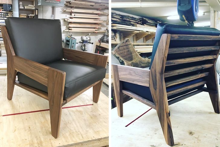 © «Только что доделал это кресло из ореха с подушками из кожи»