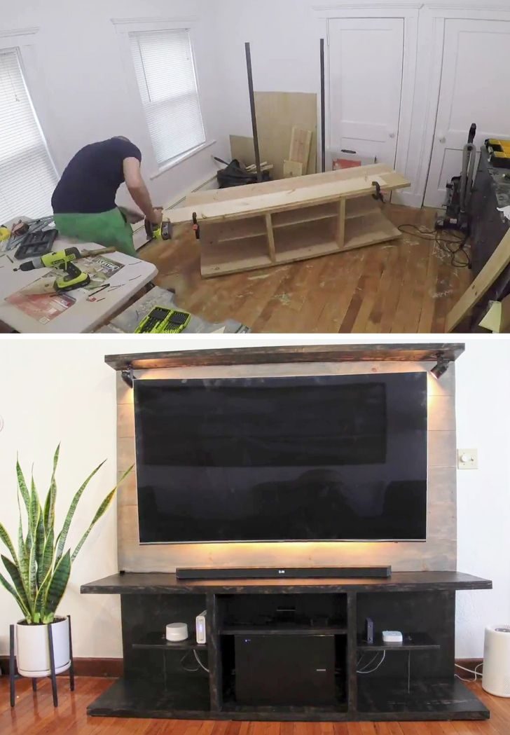 Хозяин квартиры не разрешил мужчине вешать телевизор на стену. И тот сделал вот такую тумбу для ТВ