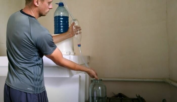 Пользоваться инструментом просто: зажимаем один шланг пальцем, а второй опускаем в емкость с топливом. Рукой держимся за бутылку и немного сжимаем ее – это позволит закачать топливо в шланг при помощи перепада давления. Отпускаем палец с первого шланга — и бензин течет сам собой.