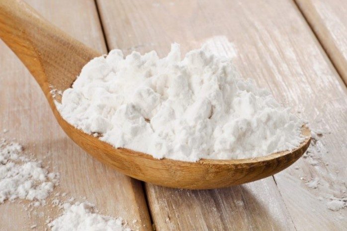 Крахмал используют аналогично соли. Разогрейте продукт на сковороде. Далее положите поверх пятна бумажную салфетку. Присыпьте изделие крахмалом и прикройте еще одной салфеткой. Придавите чем-нибудь получившийся «компресс» и оставьте на пару часов. За это время крахмал впитает загрязнение, а вам останется лишь удалить остатки щеточкой.