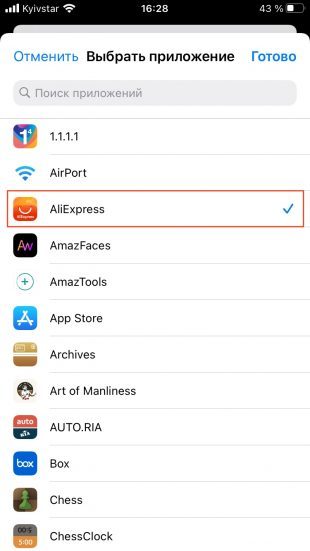 Отметьте вариант «Открыть приложение», затем снова тапните «Выбрать».