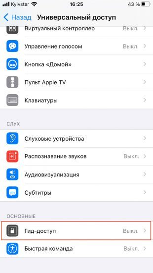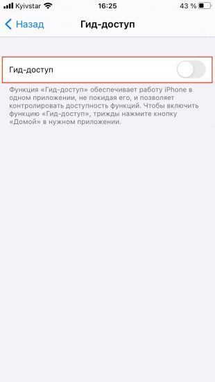 Для этого перейдите в «Настройки» → «Универсальный доступ» → «Гид‑доступ».