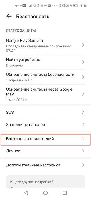Подобные возможности есть в устройствах Xiaomi, Samsung, Huawei и других. Как правило, опция называется «Блокировка приложений» и находится в системных настройках в разделе «Безопасность». Работает по такому же принципу, как и блокировщики из Google Play: нужно задать пароль и выбрать приложения.